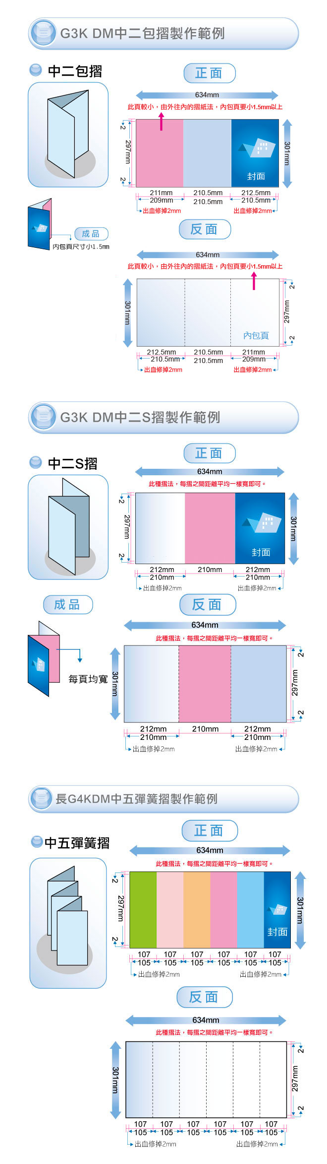 ●摺紙:中二S摺/中二包摺/中五彈簧摺